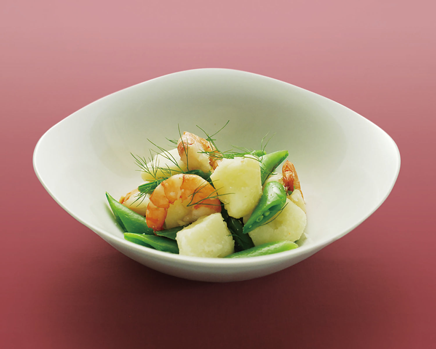 (インゲン、きぬさや、ブロッコリー、海老、イカ、タコ、ゆで卵なども合います)